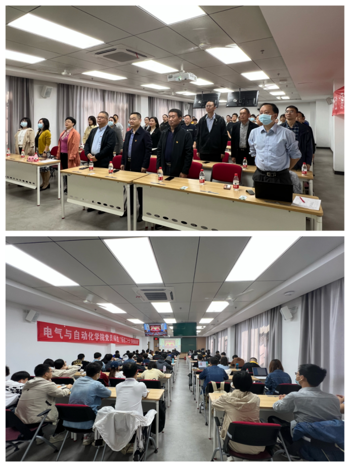 学院全体院班子成员、党委委员、教工党支部书记及办公室全体党员在主教502教室集中收看党的二十大开幕会