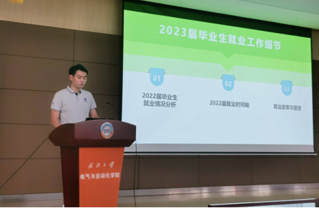 大会第二项,由研究生辅导员邹春航老师做就业分析及就业政策讲解。邹老师首先对学院上届学生毕业总体规模、生源地、毕业流向、行业分布、就业单位等相关数据进行了分析,为同学们就业选择提供了参考。此外,邹老师按照时间轴的顺序详细讲解了就业政策,明确了每个时间点应注意事项。