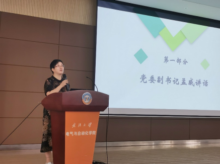 大会第一项,由院党委副书记孟威老师发表讲话。孟书记首先叮嘱大家在秋招求职期间保持良好心态,提前明确自己的意向单位与意向城市,参加招聘前仔细打磨好简历。她表达了对大家积极准备,理性择业的希望,同时也提醒大家一定要慎重签约,不要轻易毁约。最后,她鼓励大家要对自己有信心,尽早找准自我定位,同时祝愿大家都能顺利拿到心仪单位的offer。