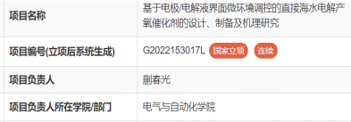 近日,学院蒯春光老师申报的2022年度“高端外国专家引进计划”经批复同意立项,项目名称为“基于电极/电解液界面微环境调控的直接海水电解产氧催化剂的设计、制备及机理研究”,是国家级立项项目。这是继2019年以来,学院连续四年获批国家外国专家项目。