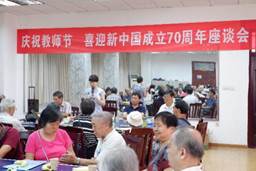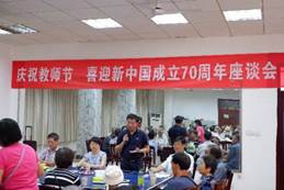 离退休教职工欢聚一堂,在退休办活动室举办“庆祝教师节,喜迎新中国成立70周年”座谈会。学院党委书记余向红、副院长康俊明领导莅临座谈会。学院老协会长关根志老师主持了座谈会。