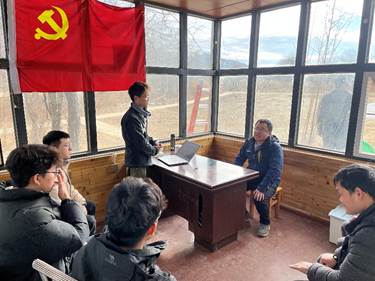 为充分调动本次科研任务各参与方的积极性,努力克服艰苦环境和特殊时期带来的困难,将来自不同单位的党员、群众团结起来,心往一处想,劲往一处使,拧成一股绳。1月19日,A片直播试验团队主动担当作为,积极响应南网科研院高压所号召,同华北电力大学和迪庆供电局一道,共同加入“迪庆高海拔试验联合临时党支部”,把党旗插在野外工作一线,把党建融入重大科研攻关任务,保证试验研究工作的顺利进行。2022级硕士生方鲲给大家做题为《有电自远方来》的主题党课,讲述了我国电力事业发展的筚路蓝缕,鼓励各位同志敢于拼搏,积极向上,做到春节“不打烊”,干出新年“加速度”。
