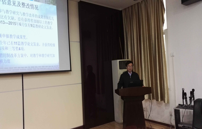 学院教学副院长刘开培教授向督导专家汇报2015年教学评估意见的整改情况,作了主题为“创新争优,追求卓越”的整改报告。