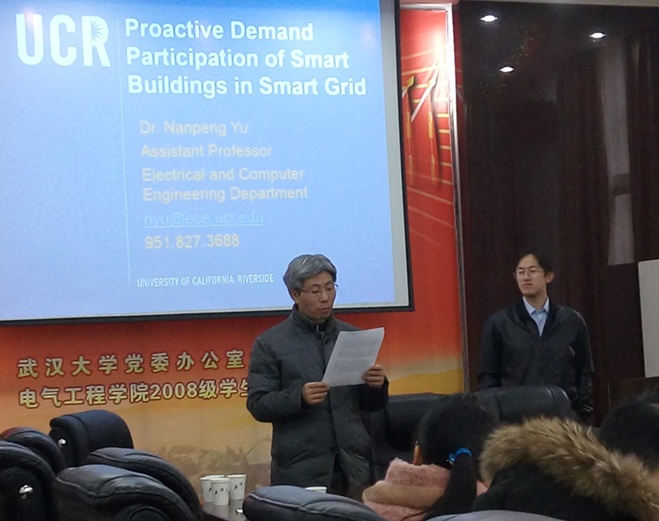 美国加州大学河滨分校助理教授余南鹏博士于2015年12月29日来A片直播访问交流。在院长助理林涛教授的主持下,余教授向A片直播师生作了题为《From Passive Demand Response to Proactive Demand Participation》的学术讲座,报导了其课题组在需求侧管理,负荷响应控制等方面最新的研究进展。余教授长期从事电力市场、需求侧管理、电力大数据等方面的科研工作,取得了丰硕的研究成果。此次讲座也受到A片直播师生的热烈欢迎,大家就最优电价曲线形成、配网三相最优潮流计算等问题与余教授展开了深入细致的讨论和交流。余教授的交流活动进一步开阔了A片直播师生在电力需求侧响应研究方面的思路和视野。