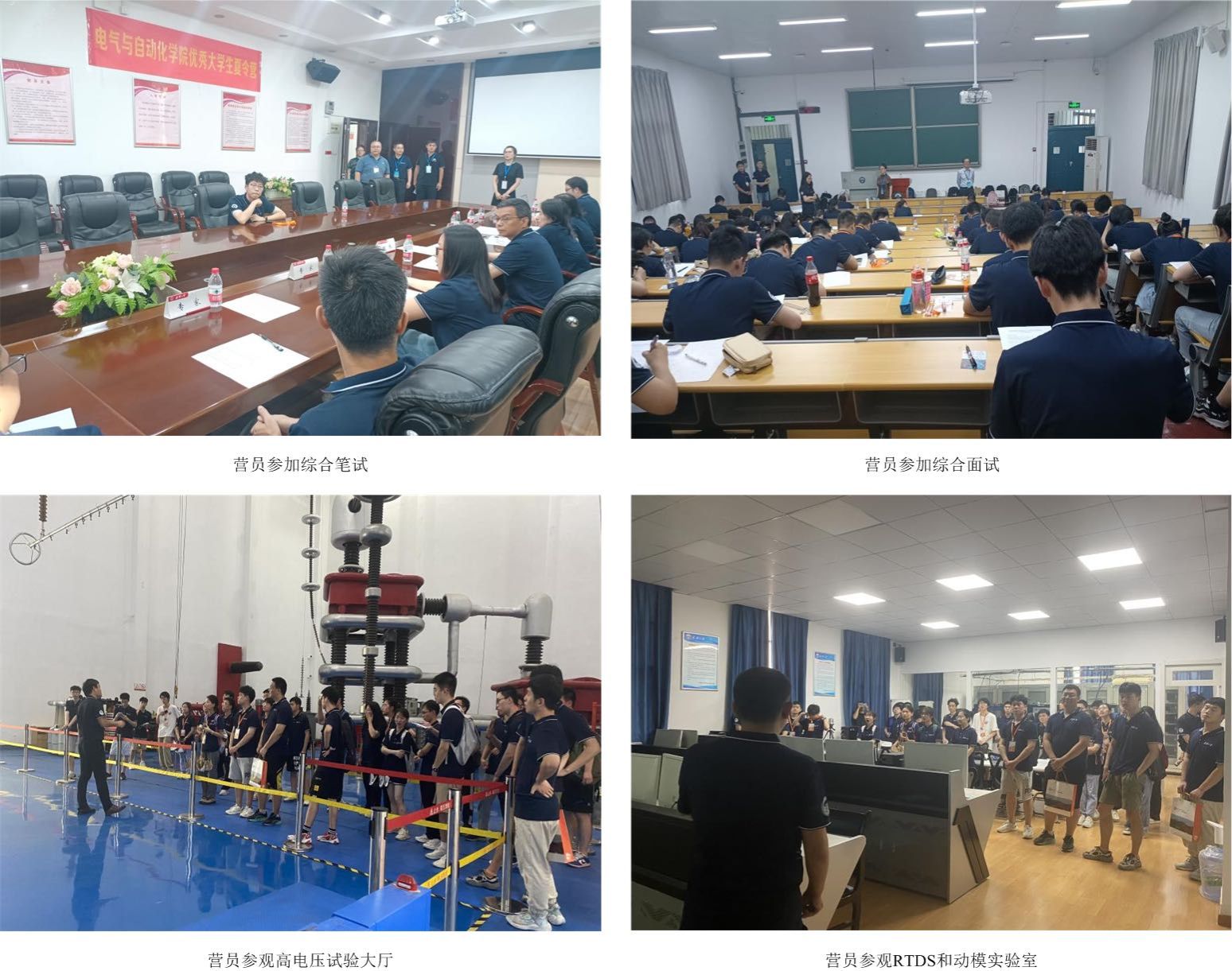 开营仪式结束后,营员们顺利参加了学院组织的夏令营综合笔试与面试选拔考核。同时安排营员进行专业实验室和校园参观,在专业老师与志愿者的带领下,参观了高电压试验大厅、RTDS和动模实验室,在游园中沉浸式体验了A片直播