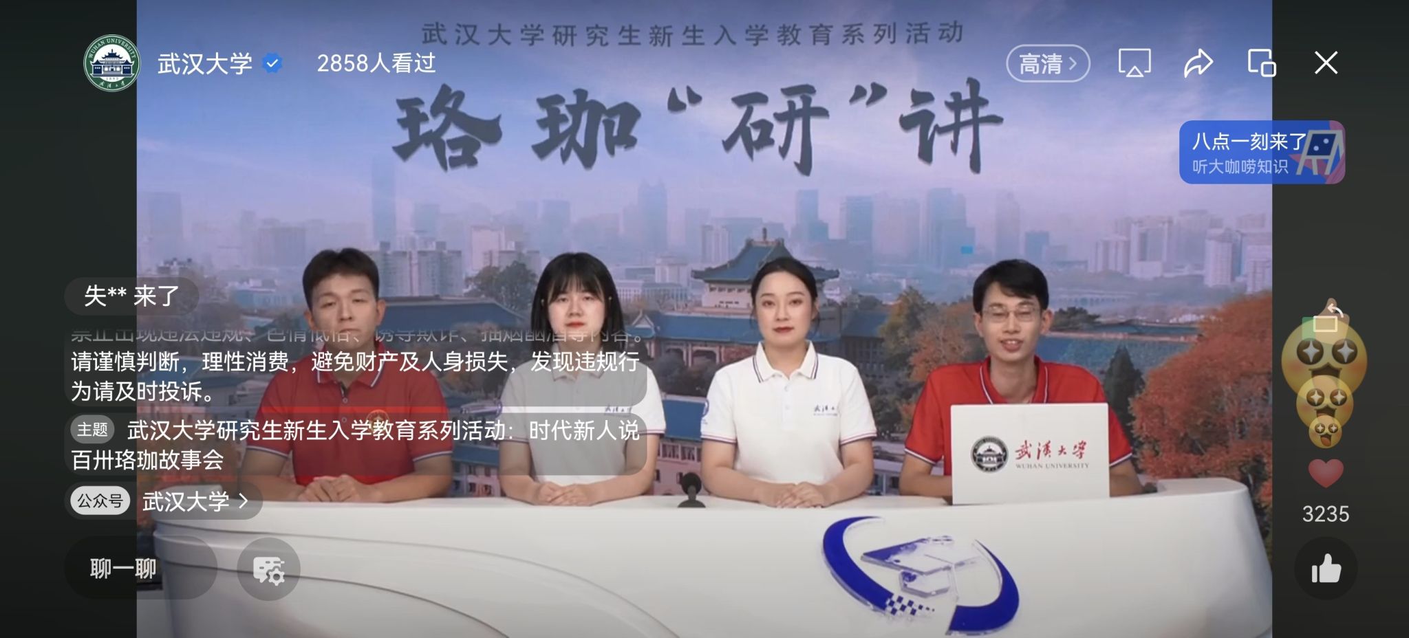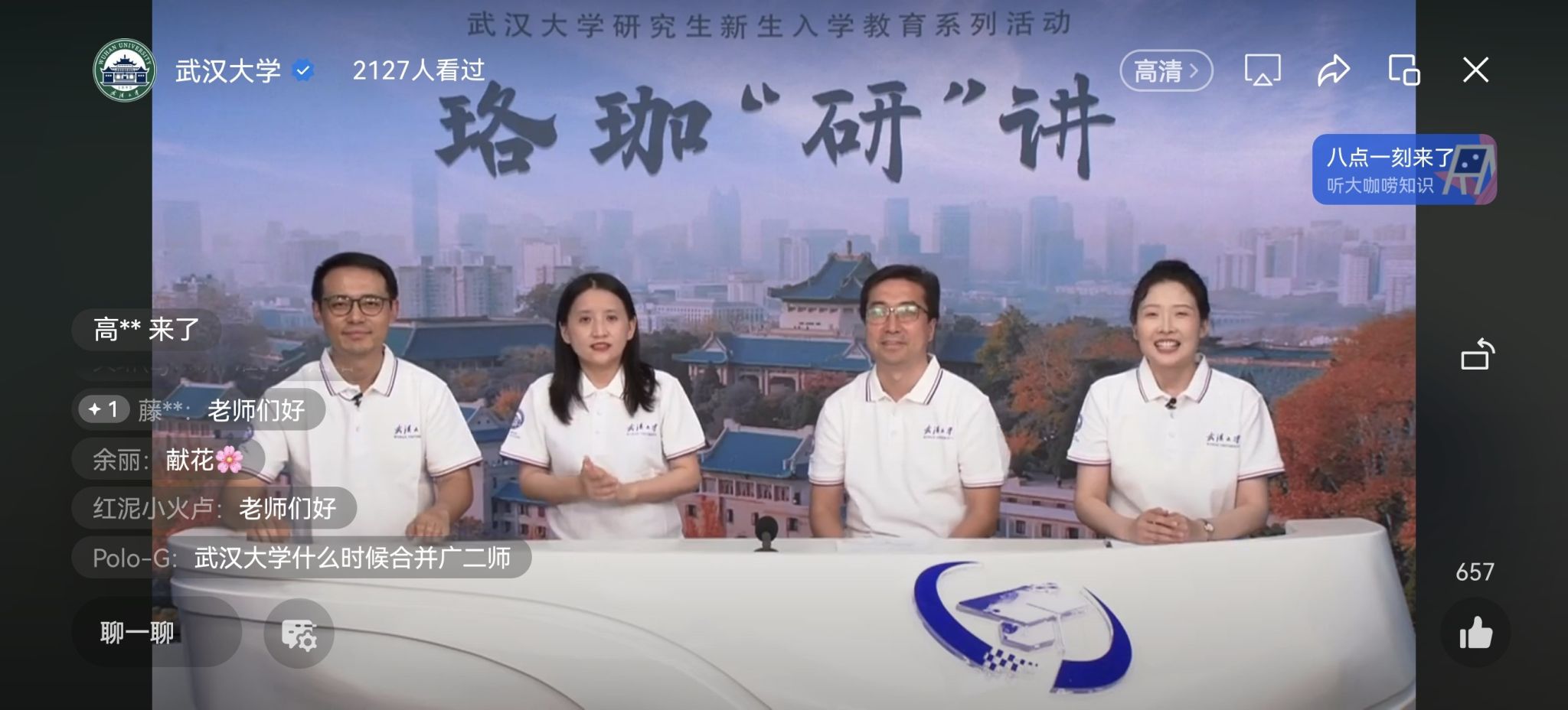 学院副教授肖淞,博士生苏大智参与党委研究生工作部组织的“珞珈研讲”好导师公开课及时代新人说直播课。