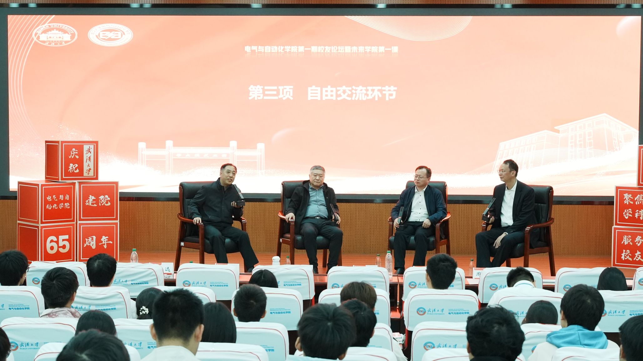 85级校友云储新能源科技有限公司副总经理任志远、85级校友钛能科技股份有限公司监事会主席韦东、93级校友武汉中元华电科技股份有限公司总裁卢春明三位优秀校友为同学们分享成长经验,交流行业最新动态,讨论个人生涯规划。学院院长助理龚庆武教授、本科学工办老师、未来学院学员等参加论坛。论坛由学院党委副书记陈世银主持。