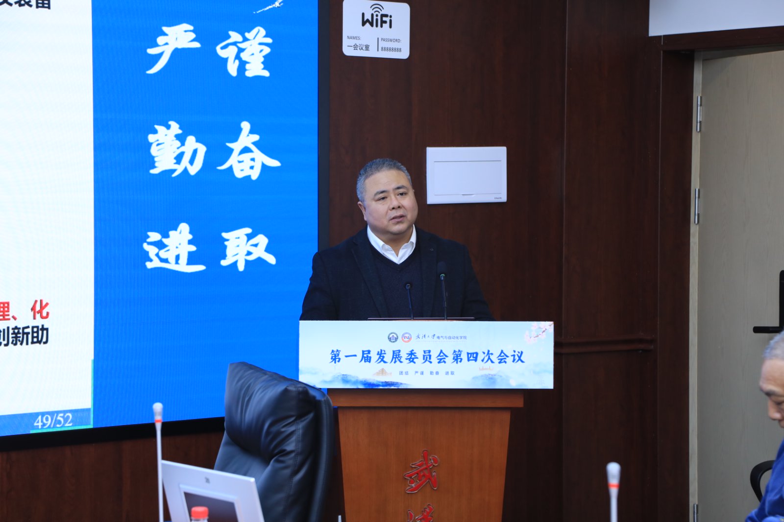 董旭柱汇报了2024年学院立德树人、人才引育、科研举措及治理水平等方面的工作亮点,介绍了2025年的工作重点,特别是全重实验室和水风光多能互补平台建设、新院区建设等。