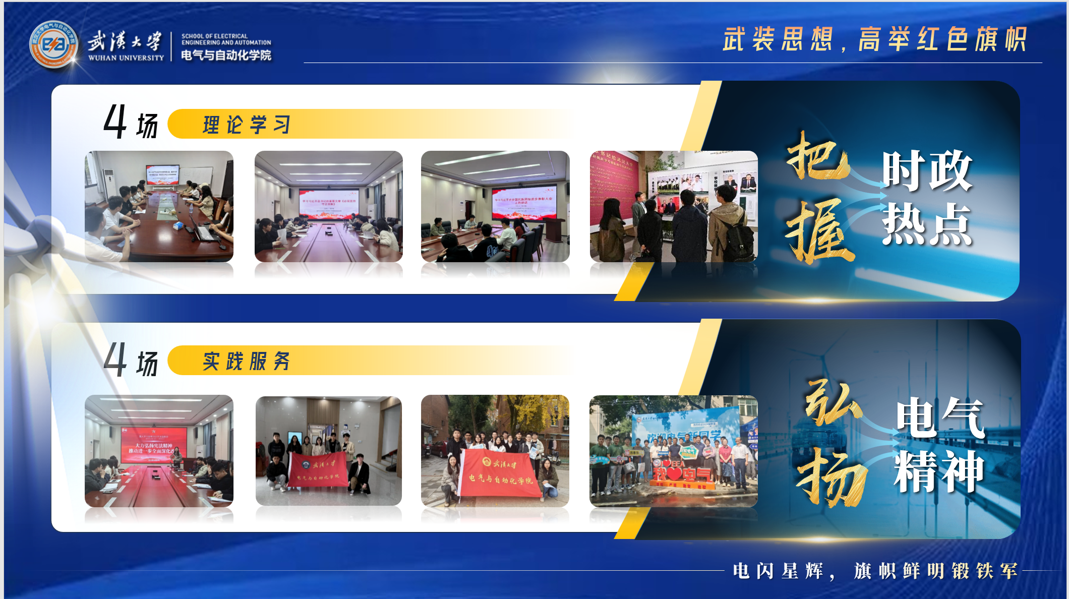 电气研会严把思想引领主方向:4场理论学习把握思政热点,紧密围绕党团中央;4场实践服务深入学生群体,大力弘扬电气精神。