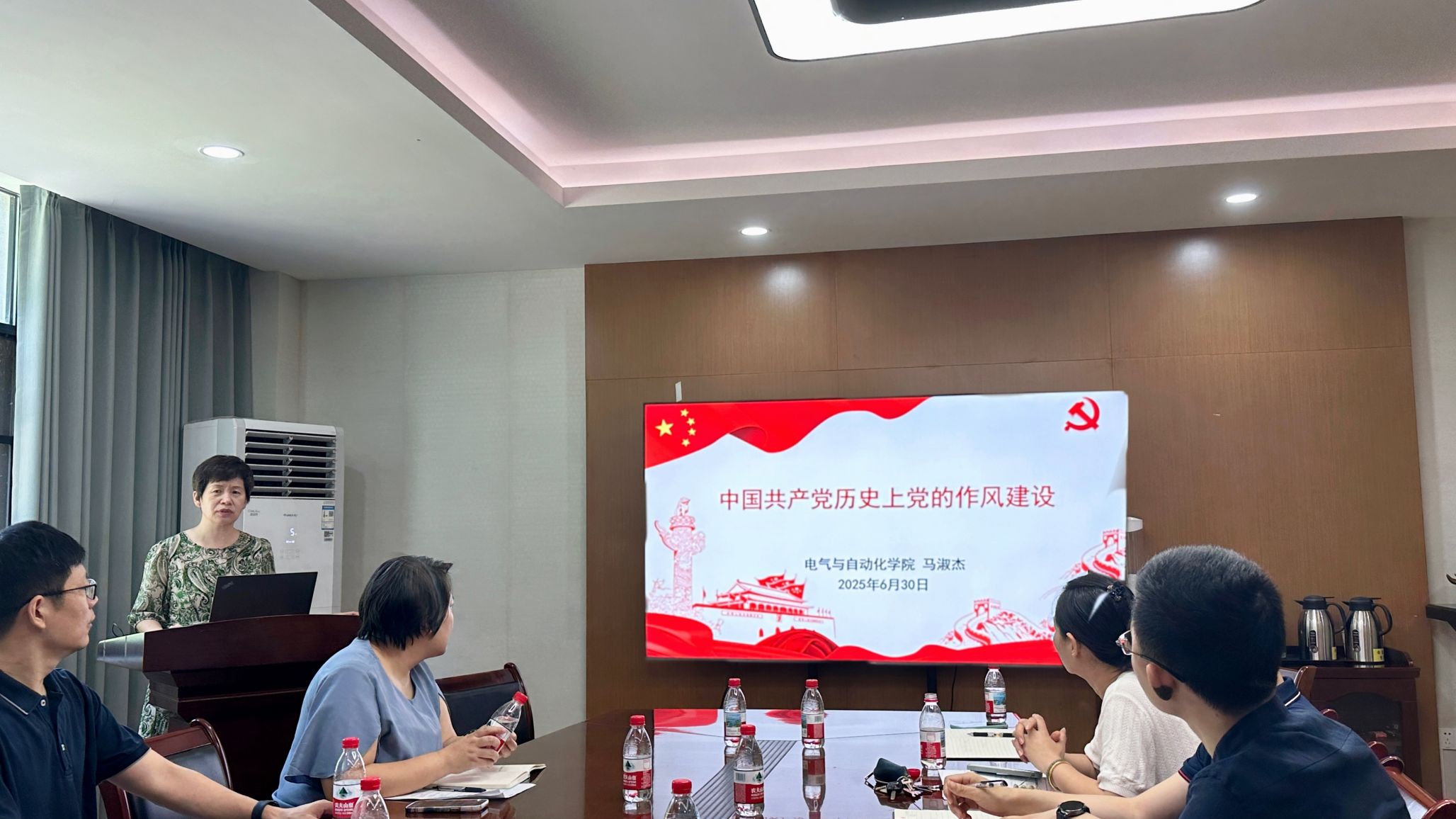 6月30日上午,学院党委书记马淑杰以“中国共产党历史上党的作风建设”为主题,为学院储能系党支部和办公室党支部全体党员讲授专题党课。本次活动是深入贯彻中央八项规定精神学习教育的内容之一。学院党委副书记陈世银主持专题党课。