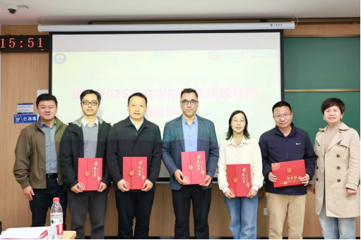 2025年度,崔雪、黄鑫、王羽、刘承锡、谭甜源、潘成、阿部、张亚东、尚磊等9人获评学院优秀班级导师,马淑杰、徐国章为优秀班级导师代表颁发证书并合影留念。