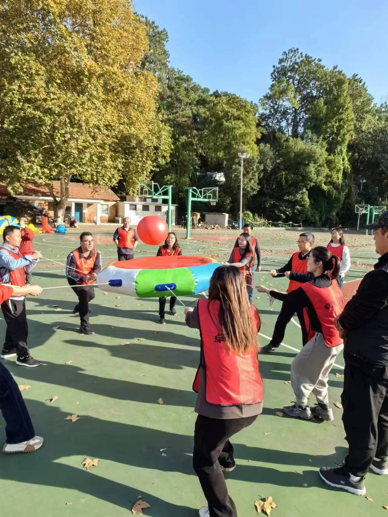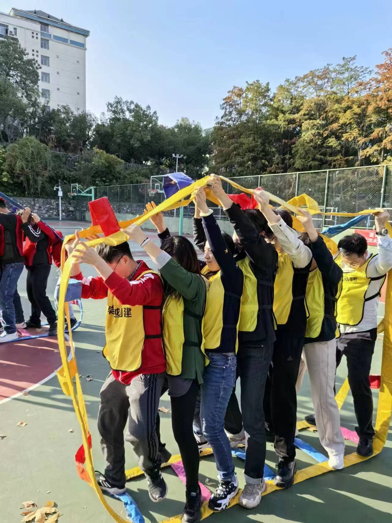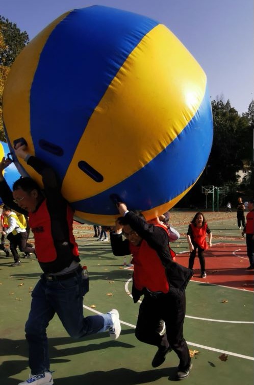 随后相继开展雷霆战鼓金钱滚滚四人三球一圈到底等项目,从不同维度要求参赛选手动作协调、配合默契,现场欢声雷动,气氛活泼热烈。