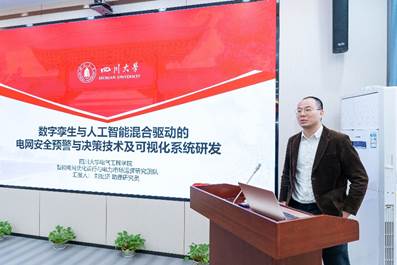 四川大学电气工程学院刘挺坚助理研究员作了题为“数字孪生与人工智能混合驱动的电网安全预警与决策技术及可视化系统研发”的报告。该报告从系统的潮流与静态安全评估、短路电流计算、暂态稳定计算、输电断面智能调控四个功能模块出发,分享了基于图深度学习的电网静态安全评估和面向输电极限计算的可迁移强化学习方法等关键研究成果。