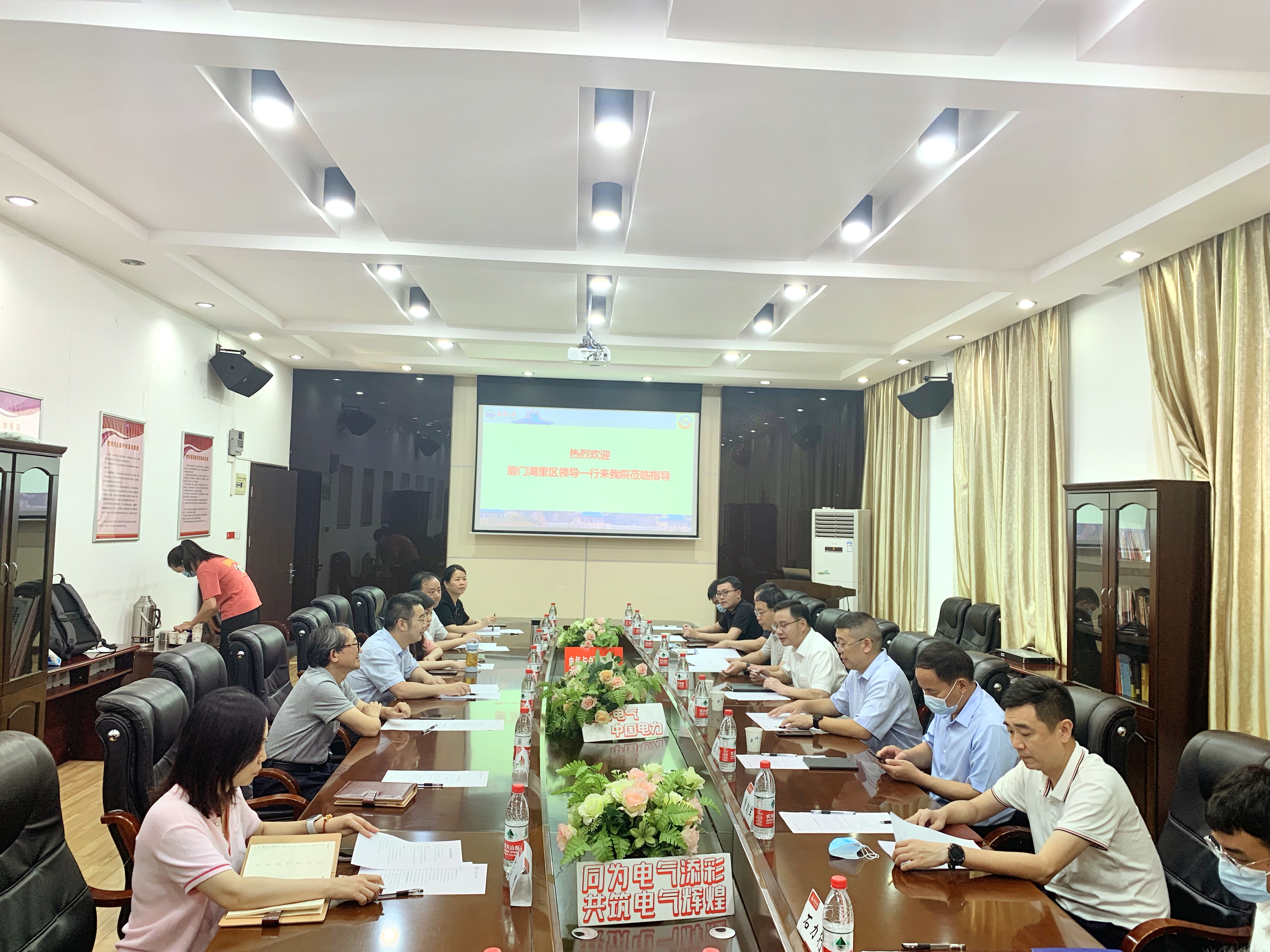 7月22日下午,厦门市湖里区委书记、副区长、区发改局局长、工信局局长、商务局局长、ABB中压开关柜全球质量经理、智能输配电产业联盟秘书长一行12人来院调研,学院党委书记郭新立、党委副书记上官海兰、副院长何怡刚、袁佳歆陪同调研。