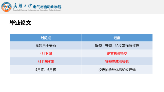 大会第二项介绍毕业设计安排。庞轩佩同学介绍大家关心的毕业设计初稿提交、答辩、抽检等时间节点,希望同学们合理安排时间推进毕业设计,在规定时间内保质保量完成毕业论文要求。