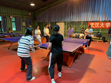在师生双打比赛中,平时认真严谨、一丝不苟的老师们在乒乓球赛场上为同学们展现出了生活中积极拼搏、赛场上勇争第一的风采,吸引了不少同学积极观看赛况。老师和同学们不仅在科研上一路同行,在运动场上也是并肩战斗,配合密切,展示了彼此精湛的球技,完美诠释了师生情谊,也为之后的比赛树立了良好的榜样。