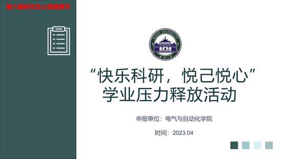 活动简介:本活动主要通过开展与专业知识相关的趣味游戏、邀请优秀朋辈进行经验分享会和学术沙龙等活动,提高同学们专业素养和科研竞赛能力,帮助研究生提升自身综合能力,促进同学们之间的沟通交流,帮助同学们敞开心扉,缓解科研压力,培育研究生同学理性平和、积极向上、轻松科研的健康心态。