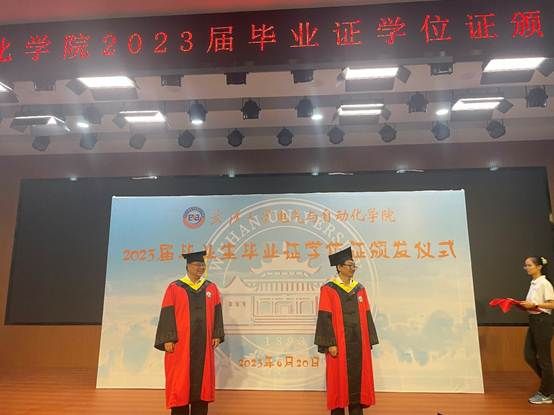 骊歌声声,桃李依依。仪式上,获得学位的毕业生们逐一上台,院长董旭柱教授、副院长何怡刚教授、副院长专祥涛教授、陈红坤教授、王建国教授、查晓明教授、阮江军教授、姚良忠教授、裴学凯教授、林涛教授、胡志坚教授、侯绍聪教授、陈剑飞教授、潘尚智教授、张俊教授等专家领导代表先后为2023届全体毕业生授予学位,拨穗正冠,毕业生们手持双证,拍照记录下这难忘的瞬间。