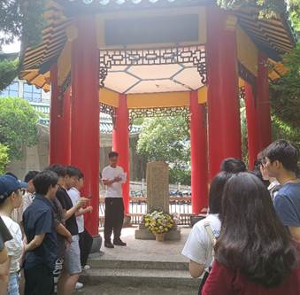 研究生2022级第二党支部、第三党支部、第五党支部以及第七党支部的全体党员来到文理学部第四教学楼门前“六一”惨案纪念亭,联合开展“缅怀珞珈先烈,传承红色基因”主题党日活动。