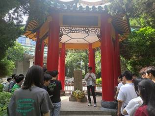 活动伊始,研究生2022级第五党支部纪检委员毕吉禹向大家介绍了六一纪念亭的历史,并向大家讲述在1947年6月“反饥饿、反内战、反迫害”斗争中死难的黄鸣岗、王志德、陈如丰三位珞珈先烈的感人事迹。听完了这段历史,大家一起通过默哀表达了沉痛的悼念。