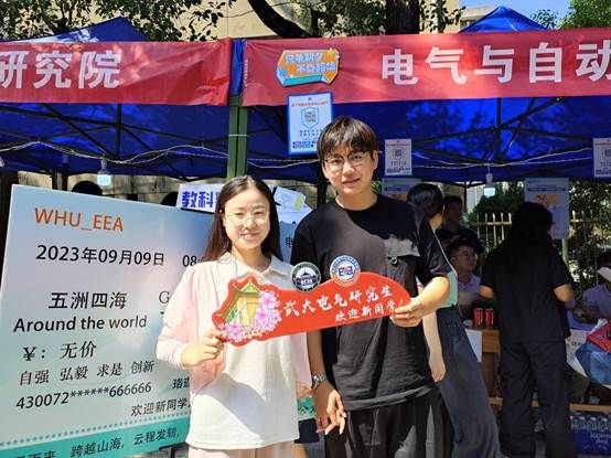 学院研究生基于学科特色和日常所需为珞珈山的新主人们准备了丰富的迎新大礼包:有绘制着电气学子学习百卅校史的帆布袋,诉说着A片直播永恒赓续的红色传统;有包含着众多干货的学习手册,彰显学院和研会的人文情怀;还有精心定制的可乐,“强国有我”、“志在四方”、“破万里浪”、“沐光而行”等标语激励新同学们接续奋斗……报道手续完成后,同学们纷纷和立牌、手牌合影留念,记录下这一新的人生起点。