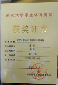 2022年研究生篮球赛男子组最佳运动员奖状