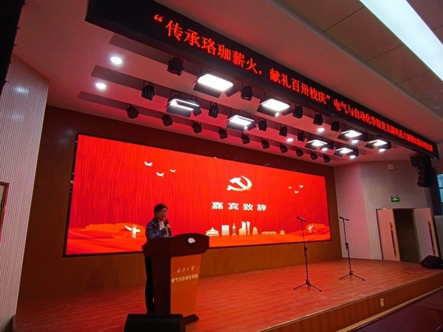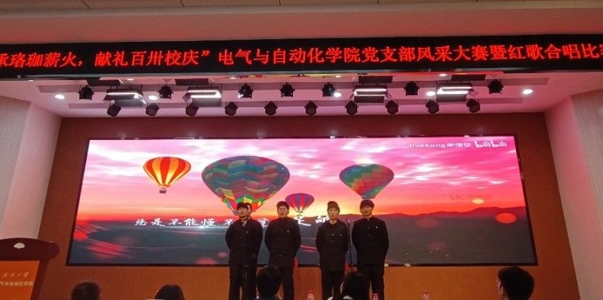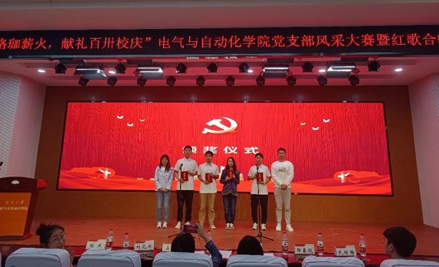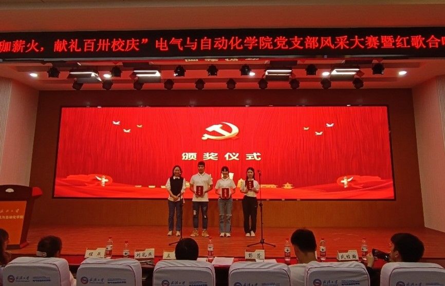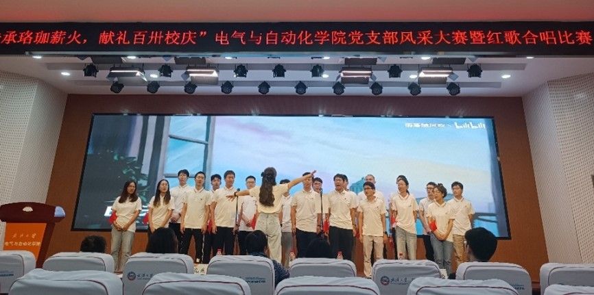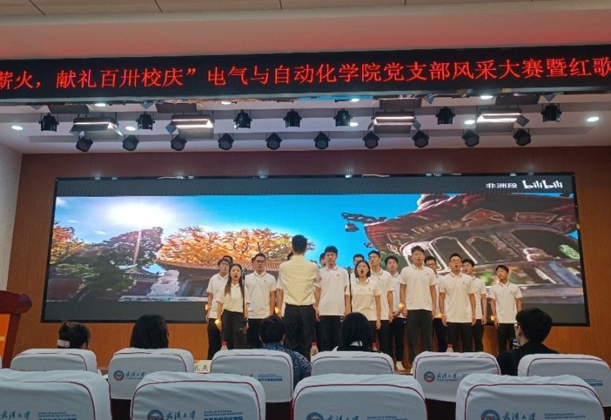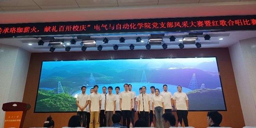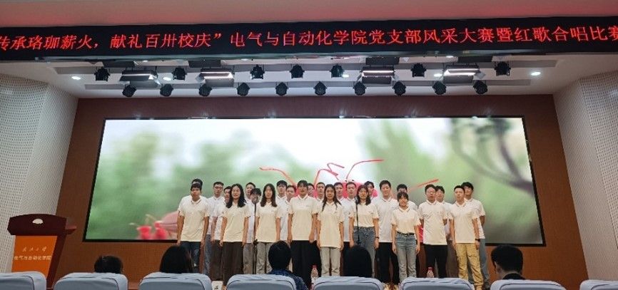 在电气报告厅举行“传承珞珈薪火,献礼百卅校庆”研究生党支部风采大赛暨红歌合唱比赛,本次比赛也将作为新生主题教育的一部分,激发同学们爱国爱党爱校之情。学院党委副书记孟威,党委组织员彭赟,团委副书记邹春航、刘乳燕,学生团委副书记武经瀚,院合唱团团长程燕出席比赛并担任评委。