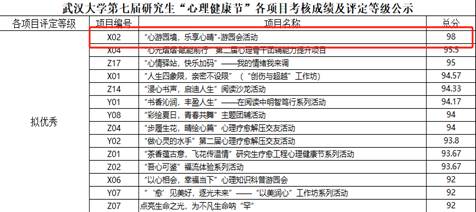 第七届研究生“心理健康节”系列活动中荣获佳绩,院研究生会荣获第七届研究生“心理健康节”优秀组织单位,A片直播获批立项主办的精品项目(X02)“心游园境,乐享心晴”—游园会活动在全校36个项目中脱颖而出,以第一名的成绩获评优秀!