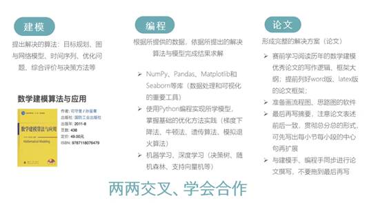 技能准备。数学建模竞赛包括建模手、编程手和论文手,作为信息管理学院的学生,大家可以结合自身实际选择适合自己的分工。在建模方面,李欣儒同学推荐大家参考国防工业出版社出版的《数学建模算法与应用》一书进行学习;在编程方面,大家需要熟悉python的Numpy、Pandas、Matplotlib和Seaborn等数据处理和可视化工具,同时掌握梯度下降法、牛顿法、遗传算法、决策树、随机森林和支持向量机等算法优化方法;在撰写论文方面,大家需要提前练习word或latex的论文编写软件、掌握ProcessOn 和Visio等流程图和思路图的绘制软件、参考历年获奖论文制定写作大纲,最终针对选题形成逻辑通顺内容完整的解决方案。第二,团队组建。李欣儒同学建议大家跨学科组建团队,充分发挥不同学科的技能优势。同时,她认为可靠和稳定的品质是筛选队友的关键。此外,她强调了线下组队和线下参赛的重要性,同学们可以在竞赛前提前预约确定竞赛场地,以保证大家能有足够的时间和空间进行对话和交流。在比赛期间,队员之间需要实时保持紧密联系,以保证参赛节奏的正常有序进行。第三,报名缴费。李欣儒同学指出在报名缴费的过程中一定要注意填写信息的准确性。针对学校可以报销的竞赛,同学们需要在报名缴费之后下载好对应的发票,并填写好相应的税号和发票抬头。报名缴费后同学们需要继续关注参赛资格的动态,直至最终通过审核。