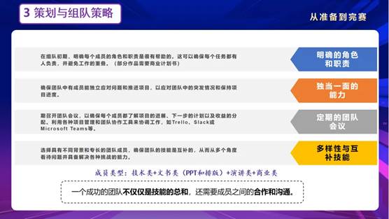 其次,李欣儒同学从技能准备、团队组建和报名缴费三个方面对赛前准备工作进行了介绍。