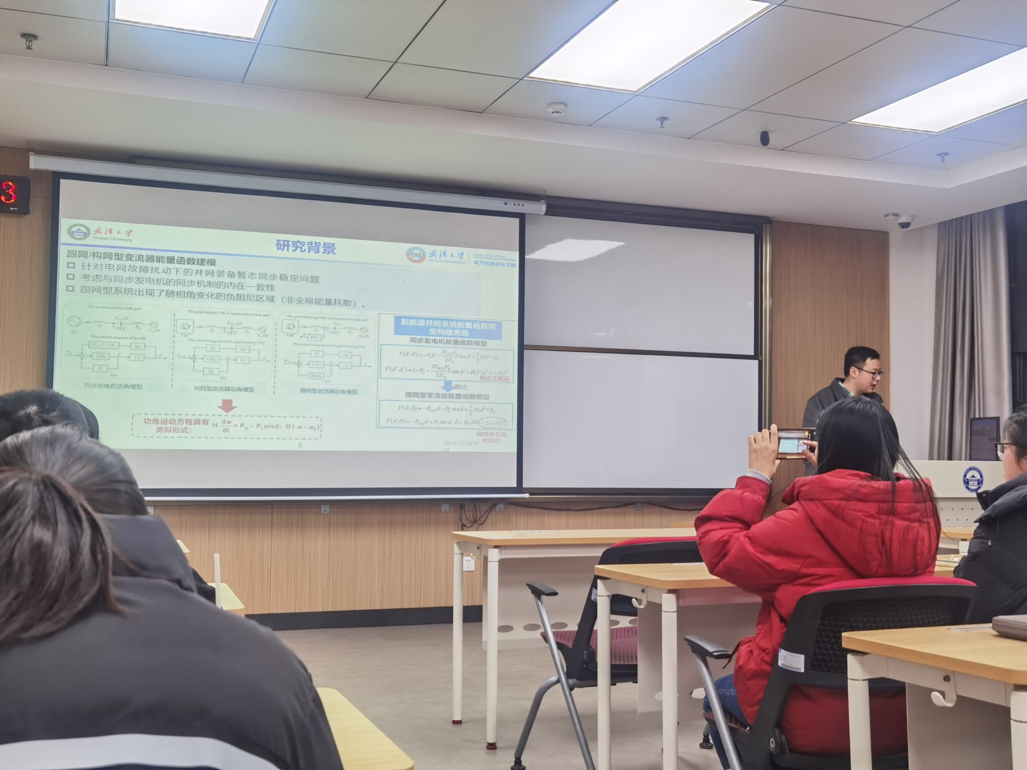 李锡林博士首先进行了个人简介,他谦逊地分享了自己的学术背景和研究方向并重点分享了其在新能源并网变流器暂态稳定性分析与控制优化方面的科研成果。他指出该领域面临三大挑战:暂态稳定性问题复杂多变,受多种因素影响;现有控制优化方法局限性大;需协调系统安全、经济性及可再生能源高效利用。针对这些挑战,李博士提出创新解决方案,为新能源并网变流器稳定运行和优化控制提供理论与技术支持,助力双碳目标实现。通过几方面的讲解,同学们逐渐明白优秀的学者从发现提出问题到解决问题并展示这一过程的关键要素。