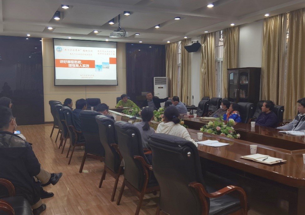 课程思政教学研究中心执行主任陈训威进行了专题报告讲座。学院教学院长专祥涛、学工书记孟威、各教学团队教师代表和教学办公室人员参加。