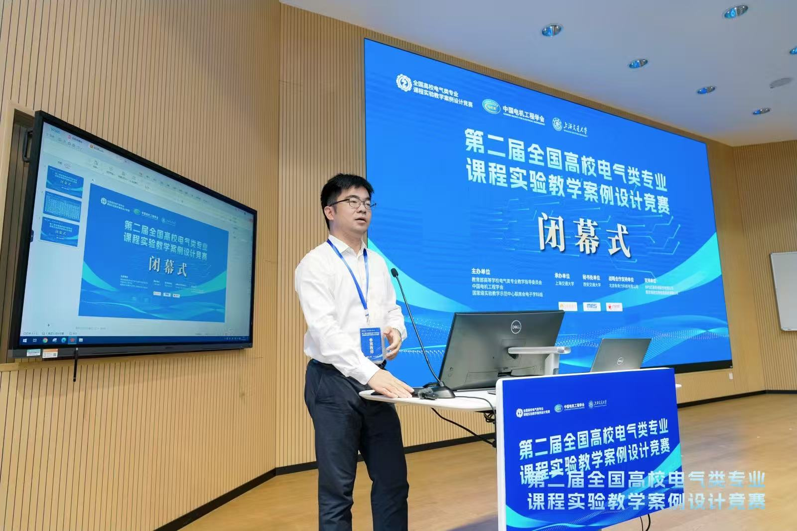 在闭幕式上,周蜜教授作为本次竞赛的唯一获奖代表发表了获奖感言。他分享了团队的备赛过程与经验,表示本次竞赛为全国电气类教师搭建了高水平的交流与展示平台,通过与各高校教师的案例分享和思维碰撞,极大拓展了教学视野,启发了新的教学思路。