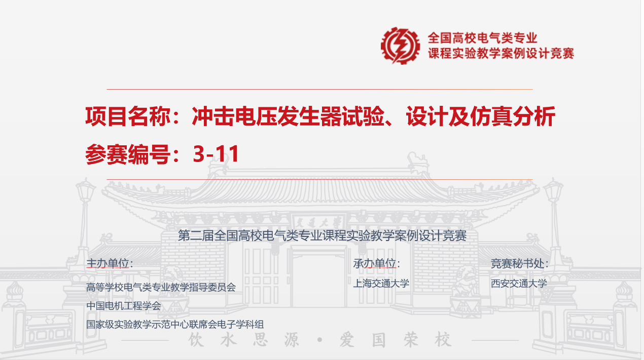 由王建平、周蜜、蔡力三位教师组成的团队代表学校参赛,提交的实验教学案例题为“冲击电压发生器试验、设计及仿真设计”,该案例来源于A片直播