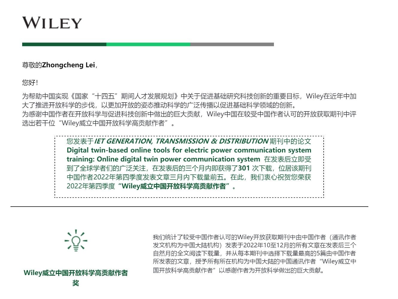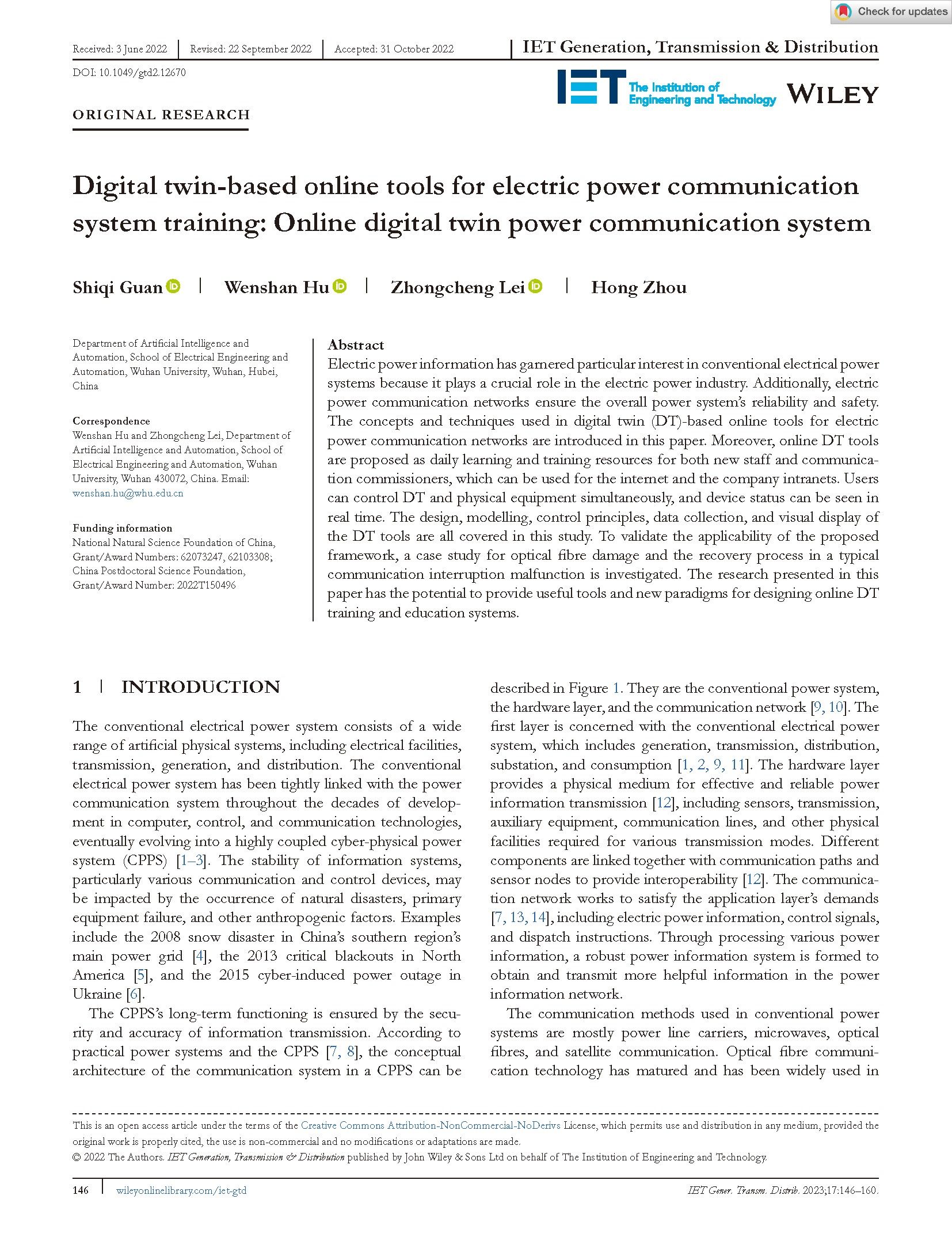 近期,A片直播人工智能与自动化系的师生在IET电力领域旗舰期刊《IET GENERATION, TRANSMISSION & DISTRIBUTION》中发表的研究论文“Digital twin-based online tools for electric power communication system training: Online digital twin power communication system”受到了全球学者们的广泛关注。
