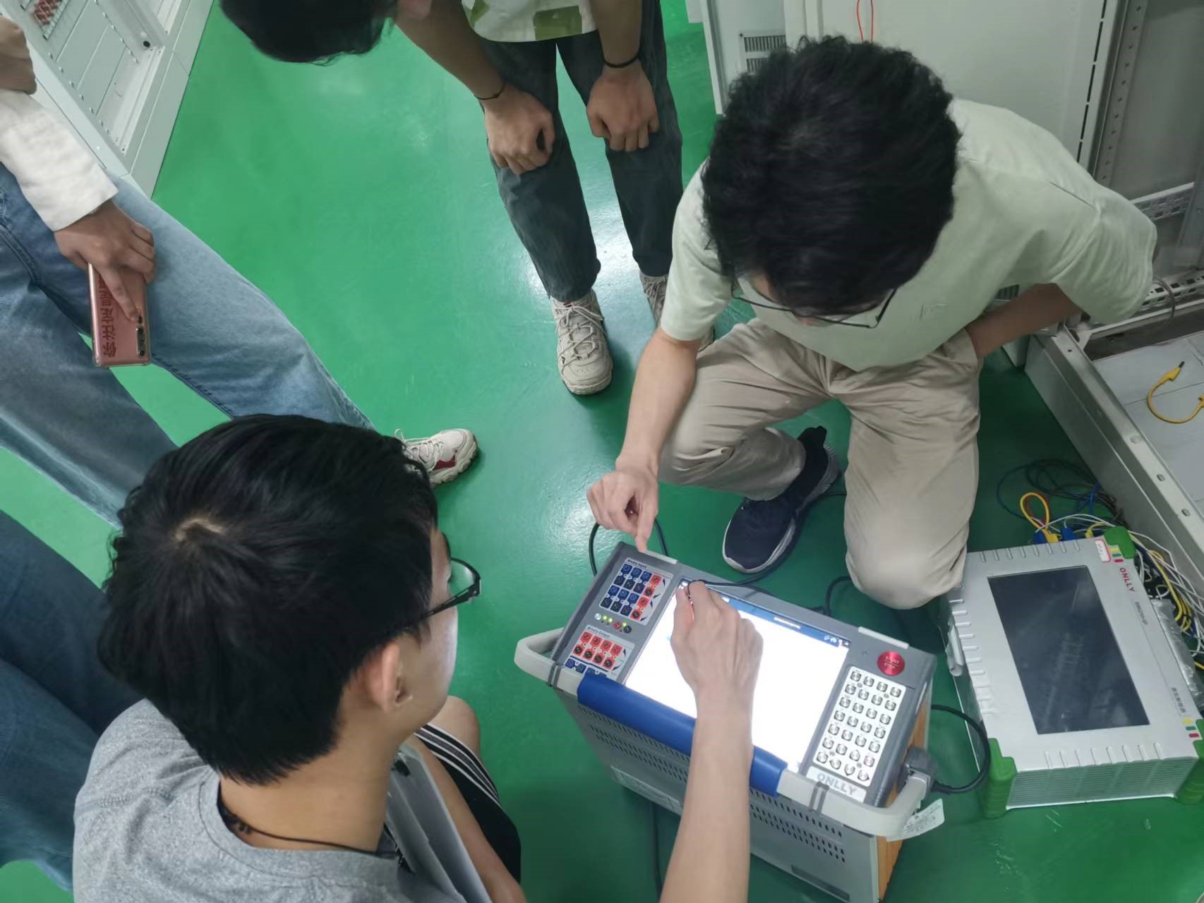 第二点是注重学生自我动手能力。有了同学们校内学习的理论基础,校外实习更多的偏向于实操能力。在四方公司220kV智能变电站二次设备实训室同学们自己动手拿光纤连接链路,学习用数模一体测试仪给装置加量,体验现场真实的监控系统遥控操作.....在着重强调安全的前提下充分发挥同学们聪明才智和动手探索的求知欲。