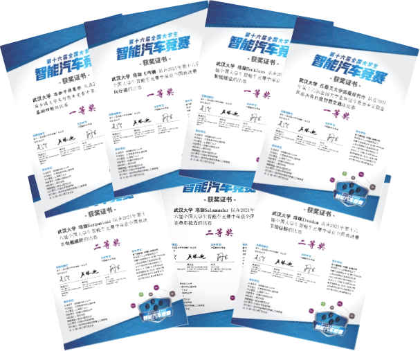 2021年8月份全国各地的疫情形势不容乐观,最终,原定于哈尔滨工程大学的全国总决赛改为线上直播举行,竞赛规则也发生了重大变化。这一改变,让大家措手不及,全体队员讨论方案、研究策略、制作标准赛道,抓紧时间调车。最终,在全国总决赛中取得了优异成绩,获得了全国一等奖4项,全国二等奖3项。