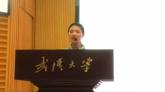 2023级新生代表毛甜发言。她阐述了作为一名珞珈山新主人的所见所闻所思,并向同学们发出倡议:希望同学们秉持校训精神,耐得住打磨,禁得住寂寞,脚踏实地,学有所成。