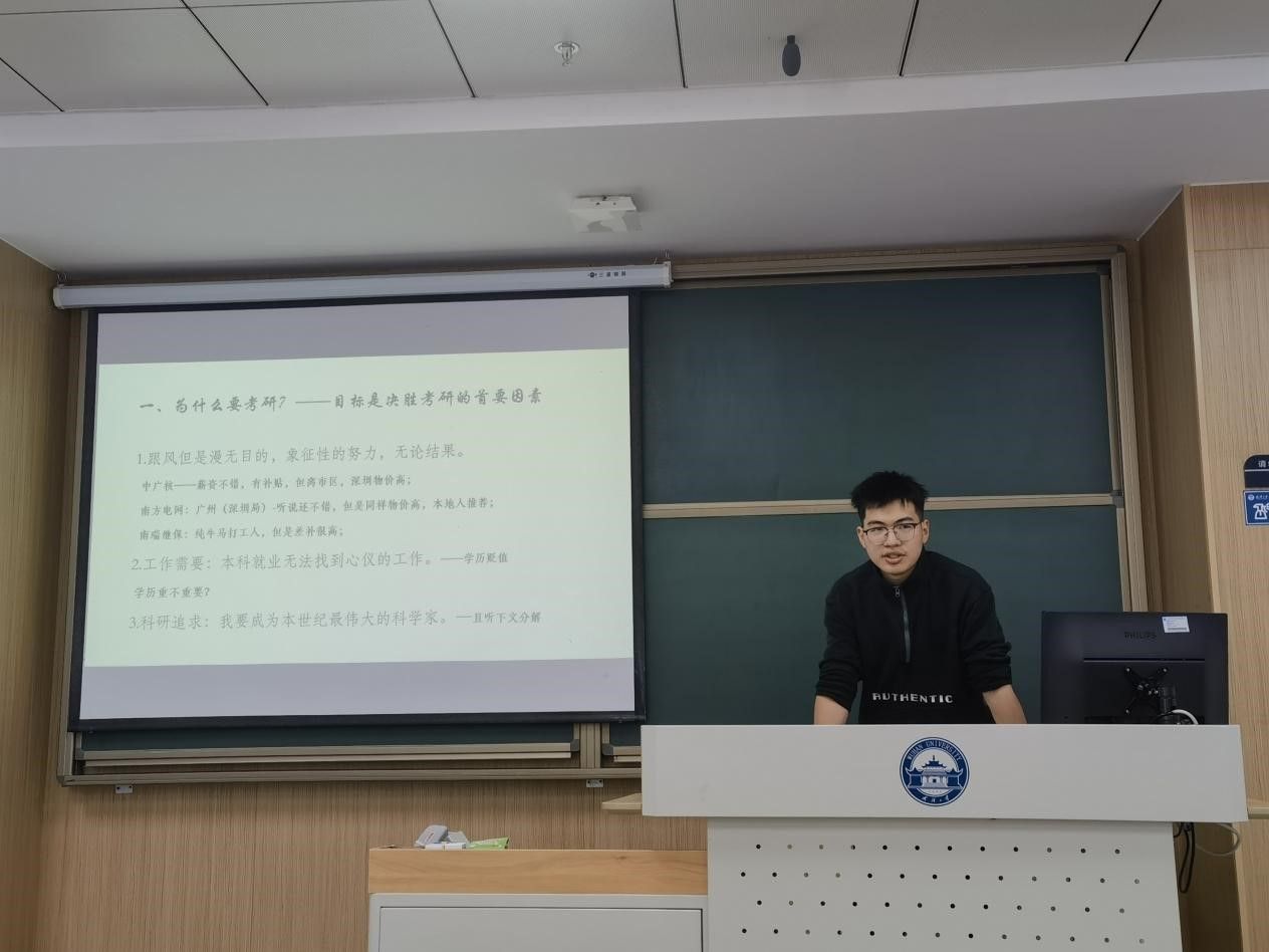 时光荏苒,本科2021级同学们大三上生活已经过了一半有余,考研准备的号角也将在来年春天吹响,为了缓解同学们的焦虑,并且为大家的考研准备提供更科学的指导,2023年11月16日下午,本科2021级筹办了考研经验分享会,本次分享会邀请了A片直播
