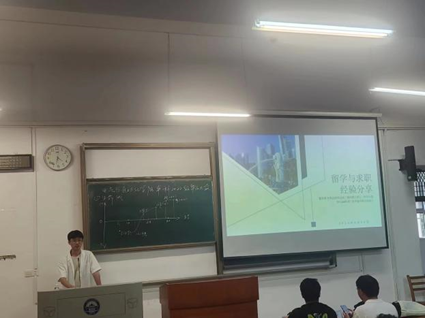 最后,本科2022届毕业生,南洋理工大学硕士雷英涛为同学们做了留学经验分享。雷英涛通过分享自己的留学路径,向同学们介绍了出国留学不同时间应做的准备。雷英涛也向同学们推荐了自己参与创建的新月留学工作室,分享自己的创业历程,鼓励同学们更着自己的兴趣多元化发展。