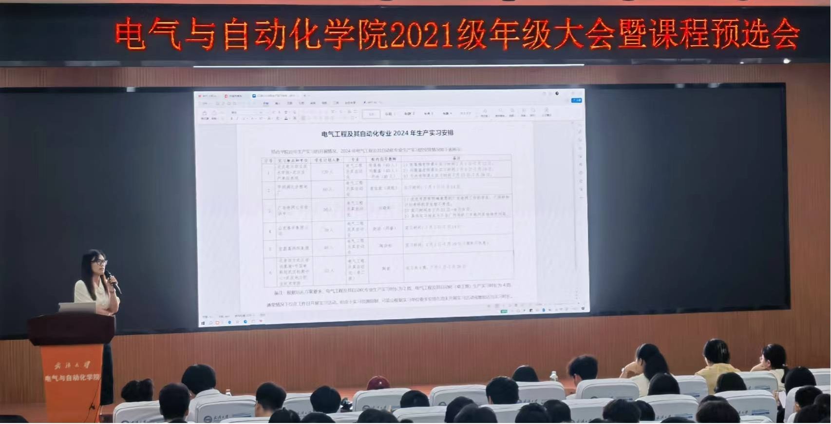 本科2021级在学院报告厅召开年级大会暨2023-2024第3学期生产实习课程预选会。学院本科2021级全体学生参加,会议由年级主席霍少弛主持。