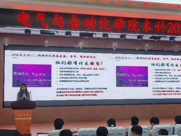 随后,学长学姐们通过生动的Vlog形式,分享了他们的大四生活回忆录,从考研、保研、考电网到日常学习的点点滴滴,为在场的同学们提供了宝贵的经验和建议。