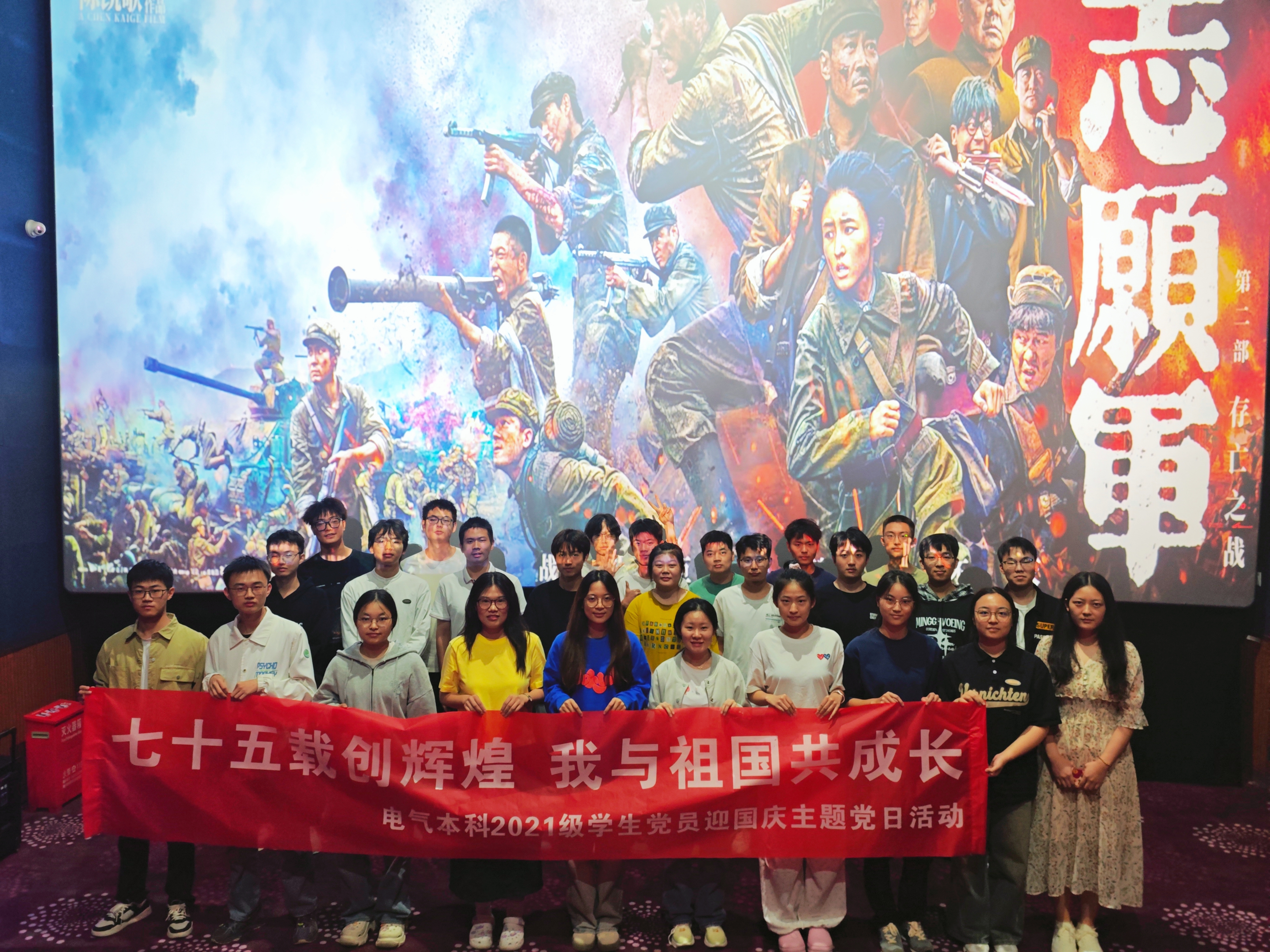 本科2021级年级学生会组织了以“七十五载创辉煌,我与祖国共成长”为主题的学生党员迎国庆观影党日活动。会议有年级学生会主席霍少驰主持。
