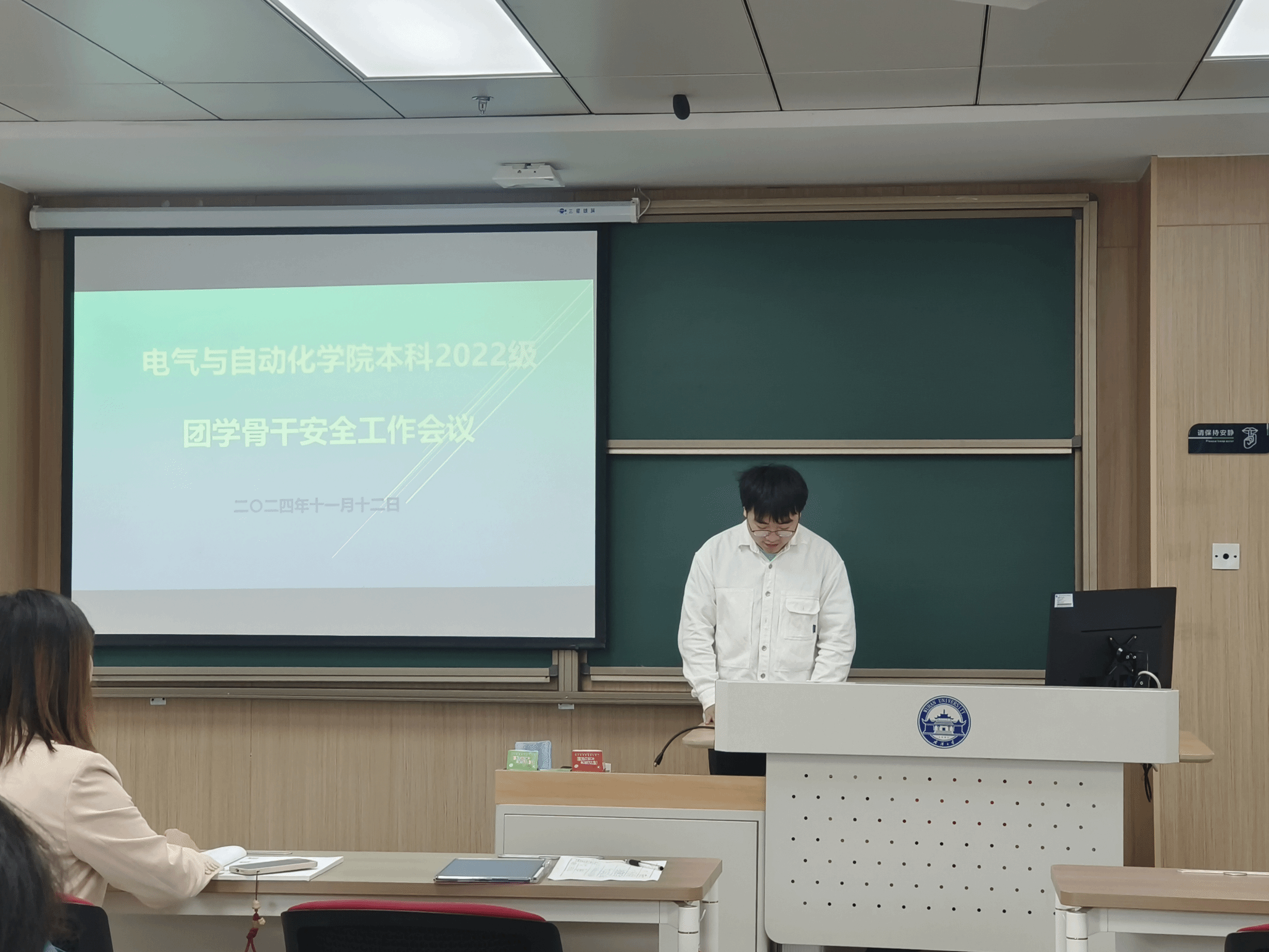 本科2022级核心骨干例会在工学部主教412教室顺利召开。年级团总支委员会,年级学生会主席团,各班班长、团支书、文体委员及非班委成员参与本次会议。会议由学院团委书记、本科2022级辅导员王青主持。