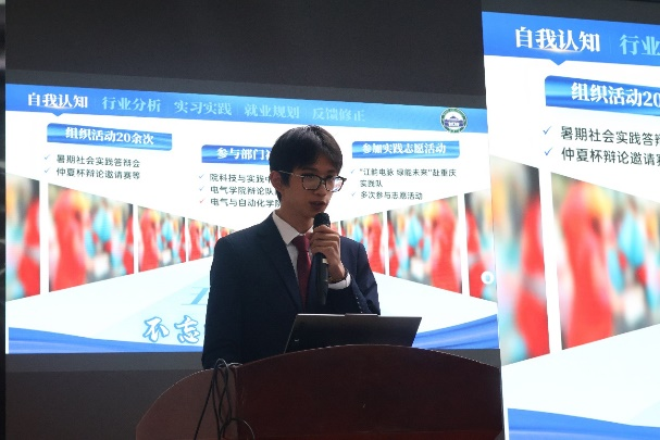 赛前,通过班级赛和年级初评,确定了7位同学参加年级赛。参赛选手们通过展示精心制作的PPT和讲述自己的职业发展报告,分享了自身的生涯愿景、职业目标、实践成果和动态调整情况,其中结合国家社会需求、个人兴趣特质等方面着重讲述了切实可行的职业目标实施计划。此次比赛也吸引了年级一百余名同学前来观赛。