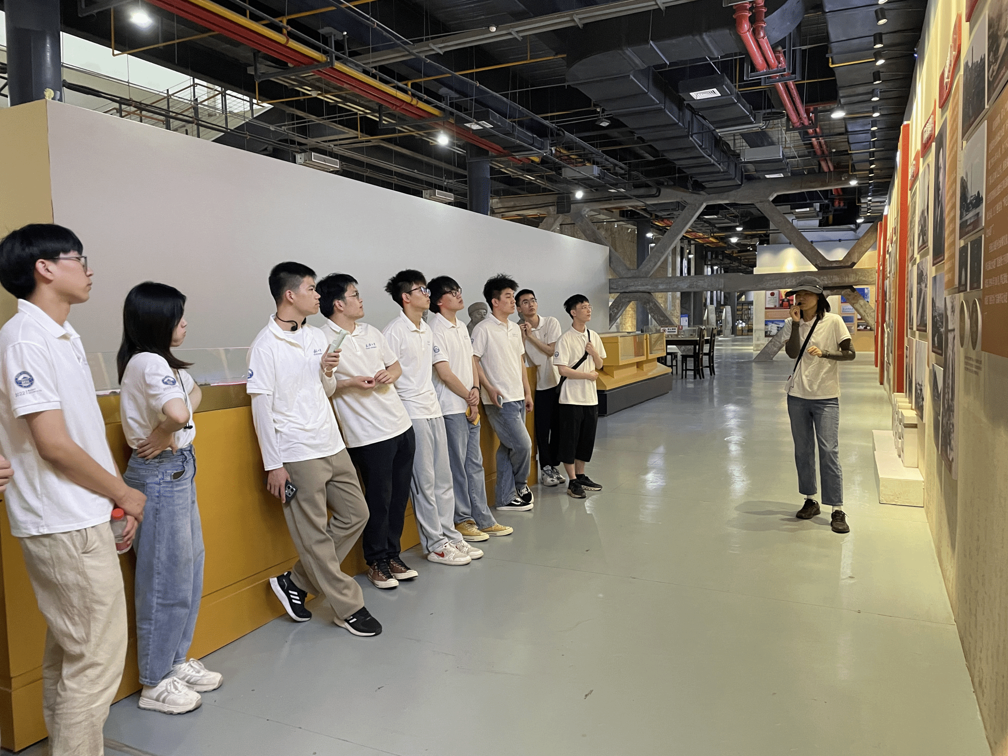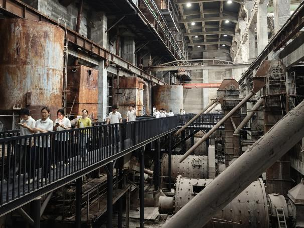 第三站是华新1907文化遗址公园。踏入园区,斑驳的铁轨、锈迹斑斑的工业设备与绿意盎然的植被相映成趣,仿佛在无声诉说着往昔的辉煌。工作人员介绍,华新1907文化遗址公园前身是始建于1907年的华新水泥厂,承载着城市工业发展的重要记忆。历经岁月洗礼,园区在保留原有历史建筑与工业遗迹的基础上,通过科学规划与创新改造,将工业遗产保护与文化旅游、休闲娱乐相融合,成为当地文化新地标。同学们在参观过程中,感受着时代的发展和历史的沉淀与创新。