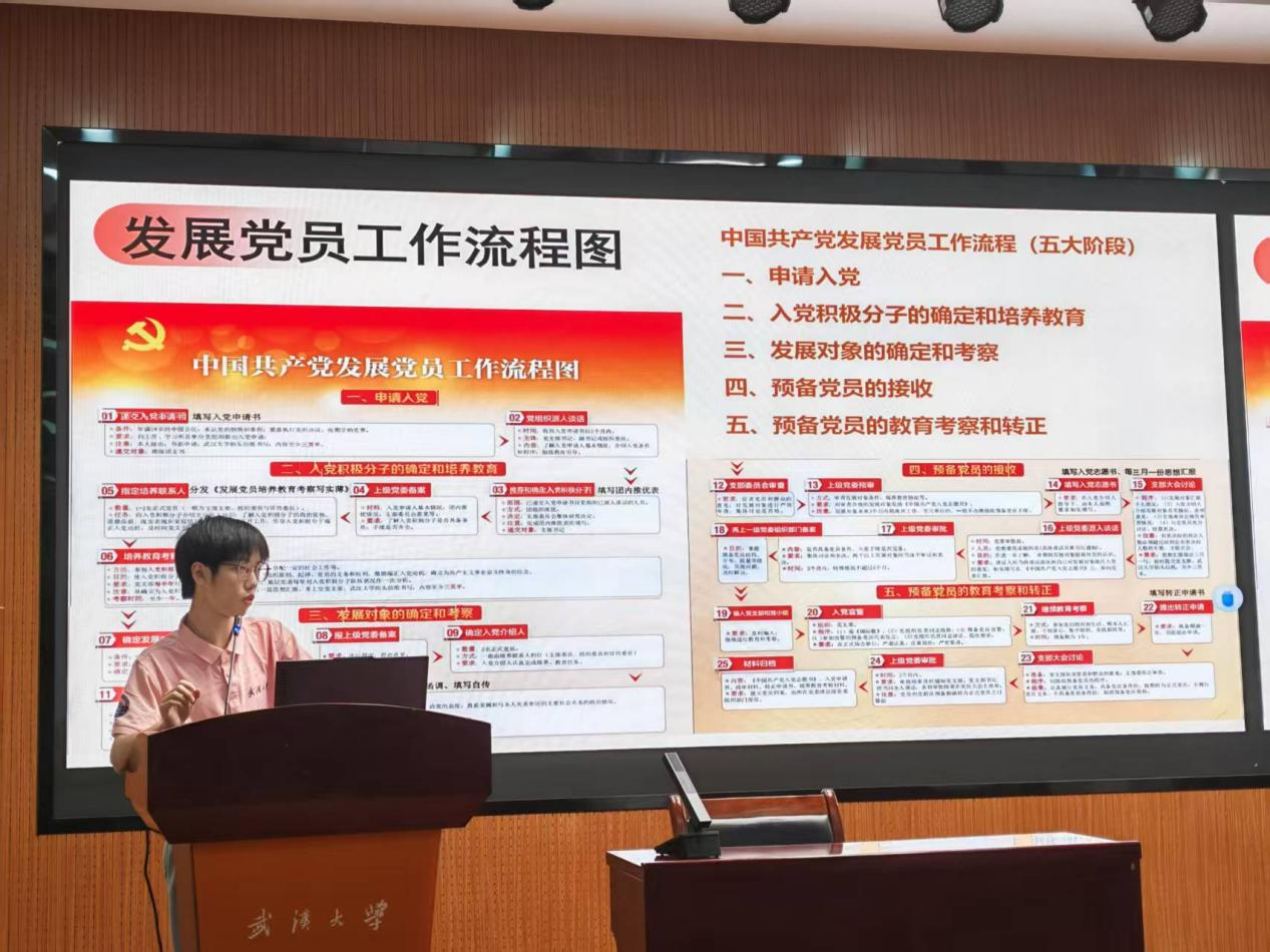 随后,兼职辅导员万志康向大家介绍了自己,他以“过来人”身份鼓励新生重视学习、积极参与社会实践,遇困惑及时沟通,尽早规划未来,希望同学们在武大电气收获知识与成长。他详细介绍了入党流程,从申请入党、确定积极分子、确定发展对象,到接收预备党员、预备党员转正,逐一说明各环节的要求与程序,为有志加入党组织的同学提供了清晰指引。