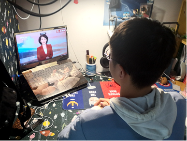 学生党员跟随二十大开幕会直播齐唱国歌