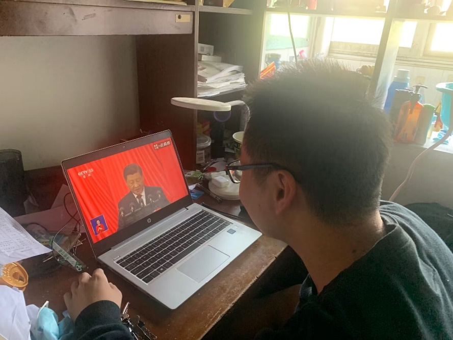 本科党总支高度重视、认真筹划,集中组织学生党员于工学部主教503教室集中收听收看开幕会直播,并要求预备党员、发展对象、入党积极分子自行学习,热议学习体会。