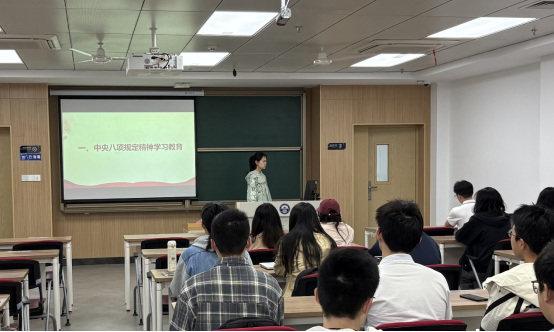 近日,中共中央办公厅印发《关于在全党开展深入贯彻中央八项规定精神学习教育的通知》。《通知》指出,要巩固深化党纪学习教育成果,锲而不舍落实中央八项规定精神,推进作风建设常态化长效化。理论学习中,党支书于悦首先带领大家回顾了中央八项规定内容及其精神的提出和发展历程,并结合近期习近平总书记在贵州、云南考察时关于加强党的作风建设的重要论述,深刻认识中央八项规定的重要地位。随后,正式党员周晨阳同志带领大家详细学习中央八项规定的具体内容,强调中央八项规定精神的深刻内涵。